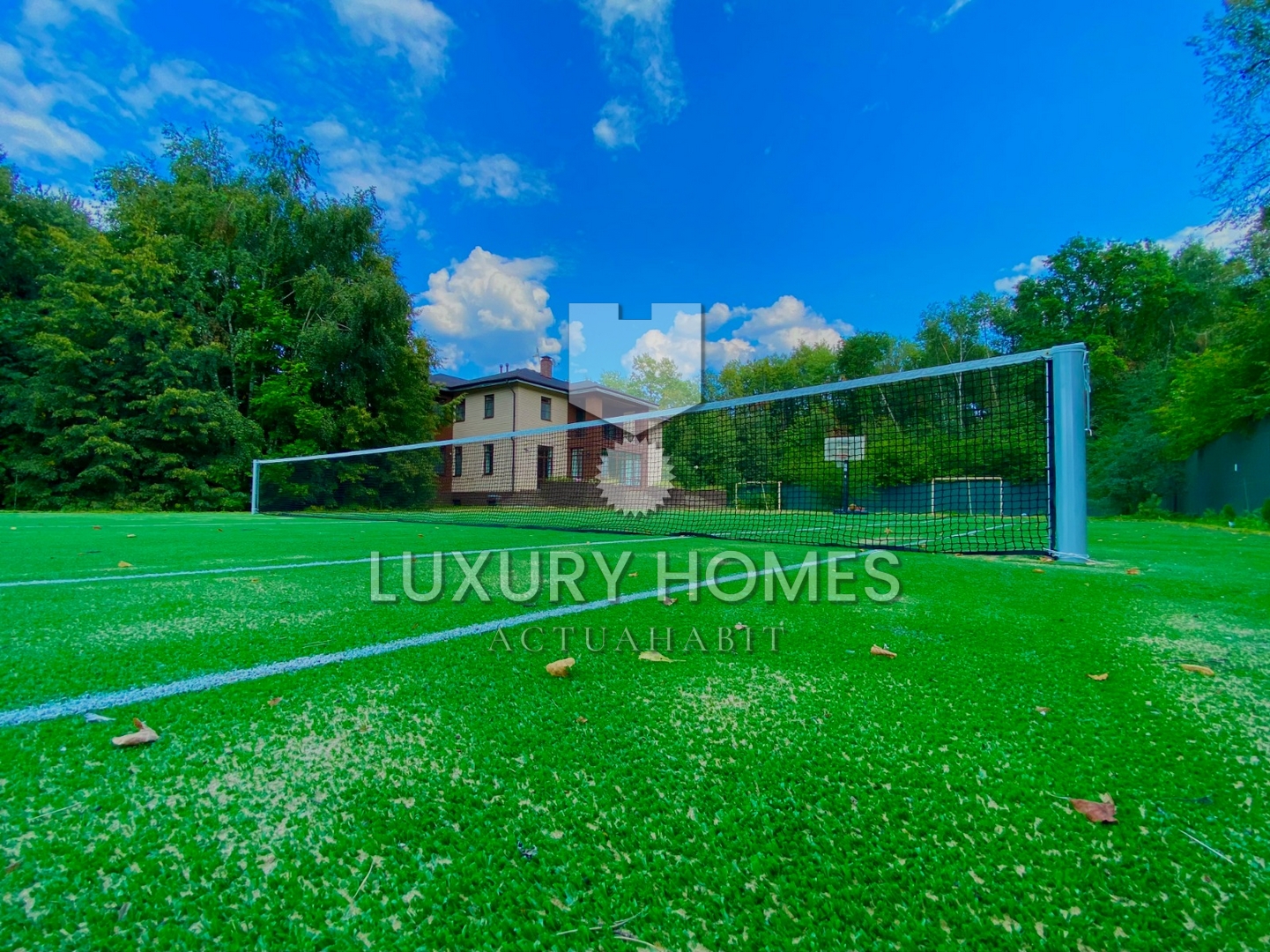 - Cancha de tenis de tamaño completo (convertible en pádel) con posibilidad de jugar contra la pared.