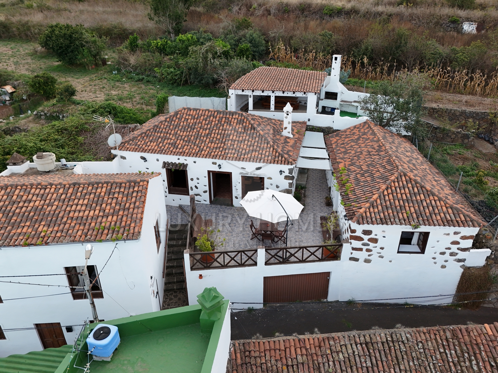 Casa de 300 m2 en Tierra del Trigo, al norte de Tenerife. Ofrece un amplio salón y cocina con comedor. Cuenta con 3 dormitorios y un apartamento independiente, cada uno con baño en suite, sumando un total de 4 baños. Dispone de varias terrazas, ideales para comer al aire libre con vistas al valle y al mar, además de una zona de barbacoa con mesón. Incluye garaje, que puede utilizarse como trastero o taller. Propiedad versátil, adecuada para familias numerosas, como inversión, o para amantes del senderismo.