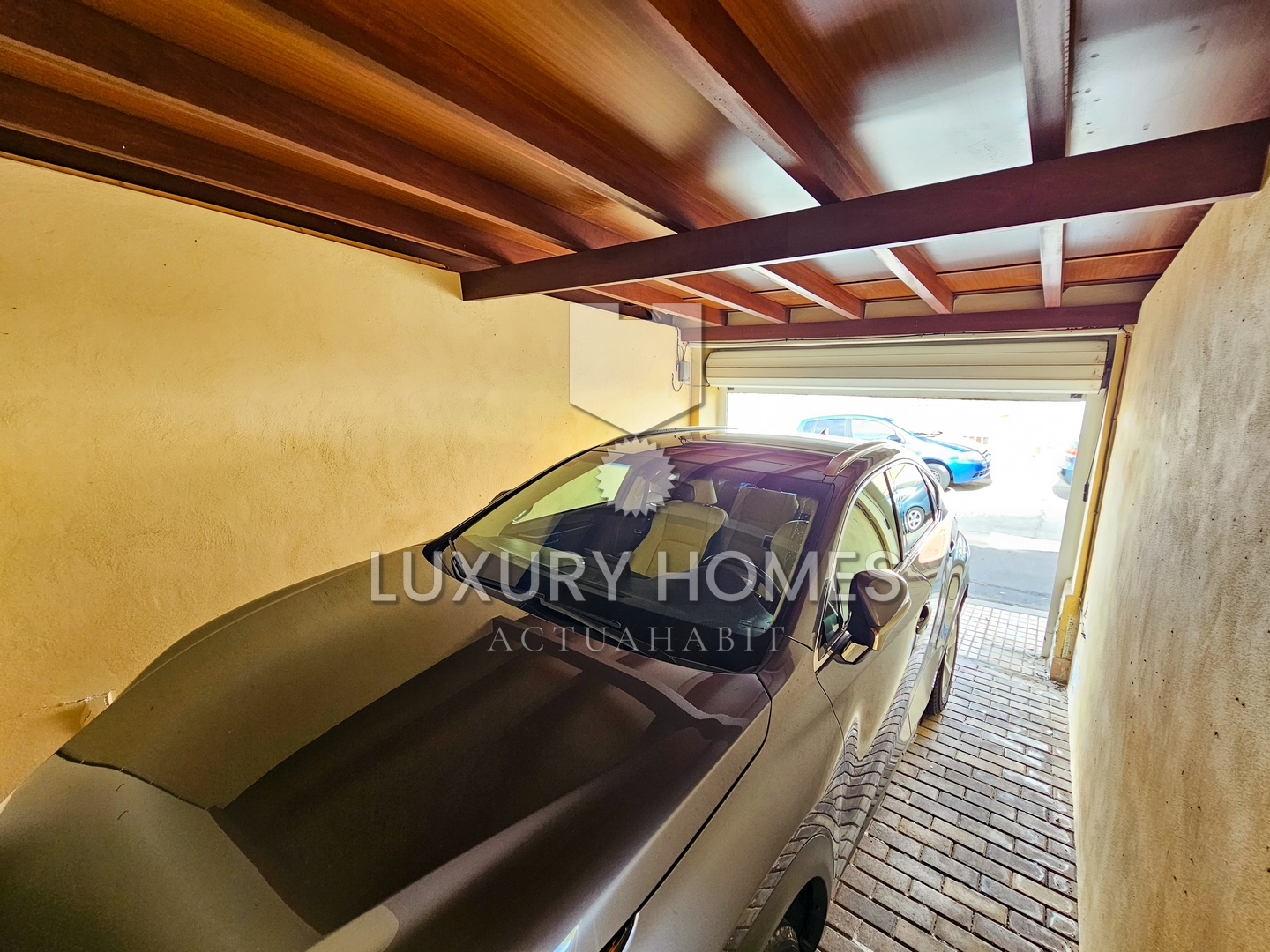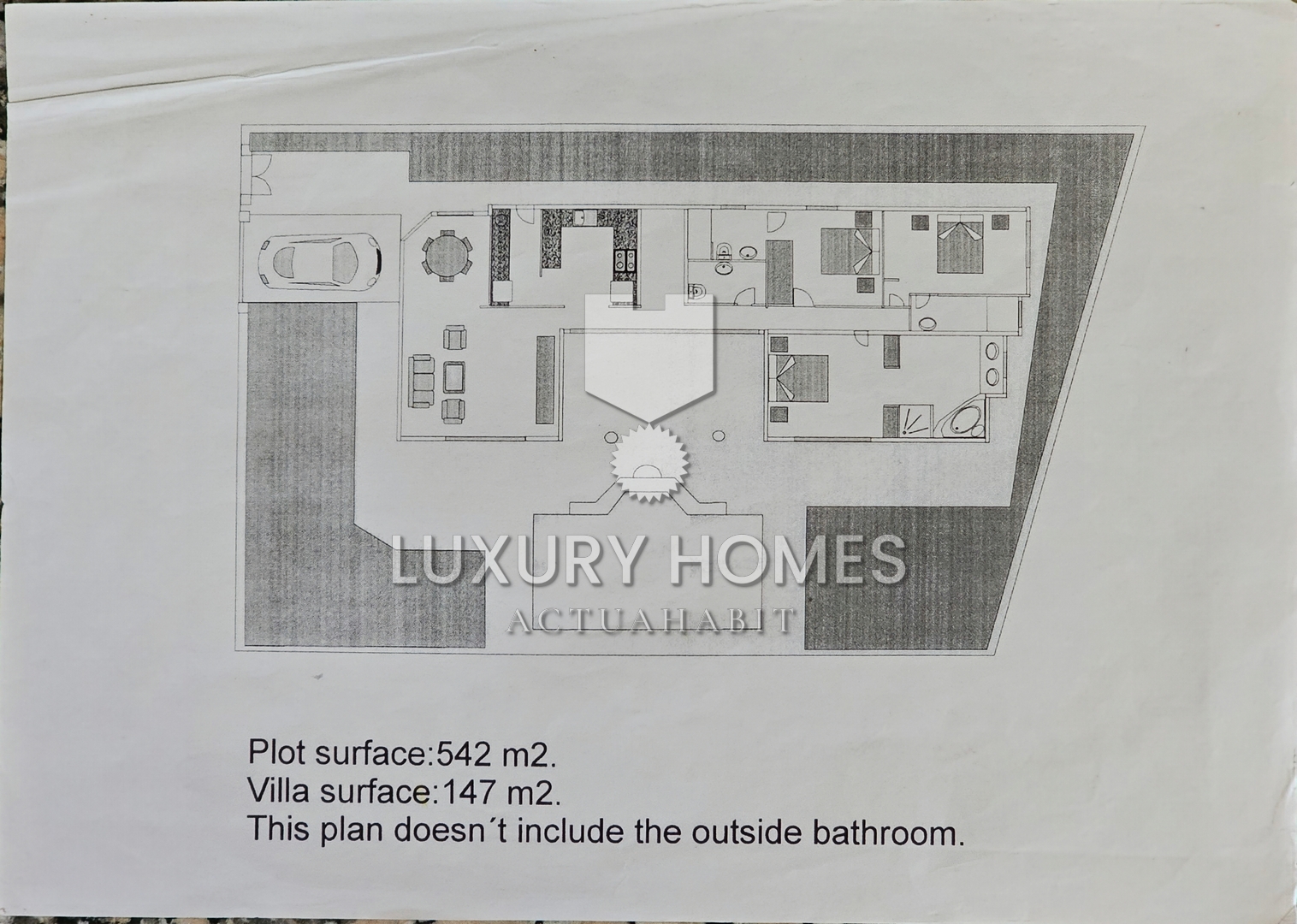 The villa includes a private 8×4 pool, surrounded by a luscious garden along with a private closed garage. There’s a dedicated room for pool equipment along with an outside shower and toilet room. Inside, you’ll find a bright living area, a spacious kitchen with pantry and laundry room, along with air conditioning throughout the property. Three comfortable bedrooms, each with an en-suite bathroom and fitted wardrobes, plus an additional guest toilet.