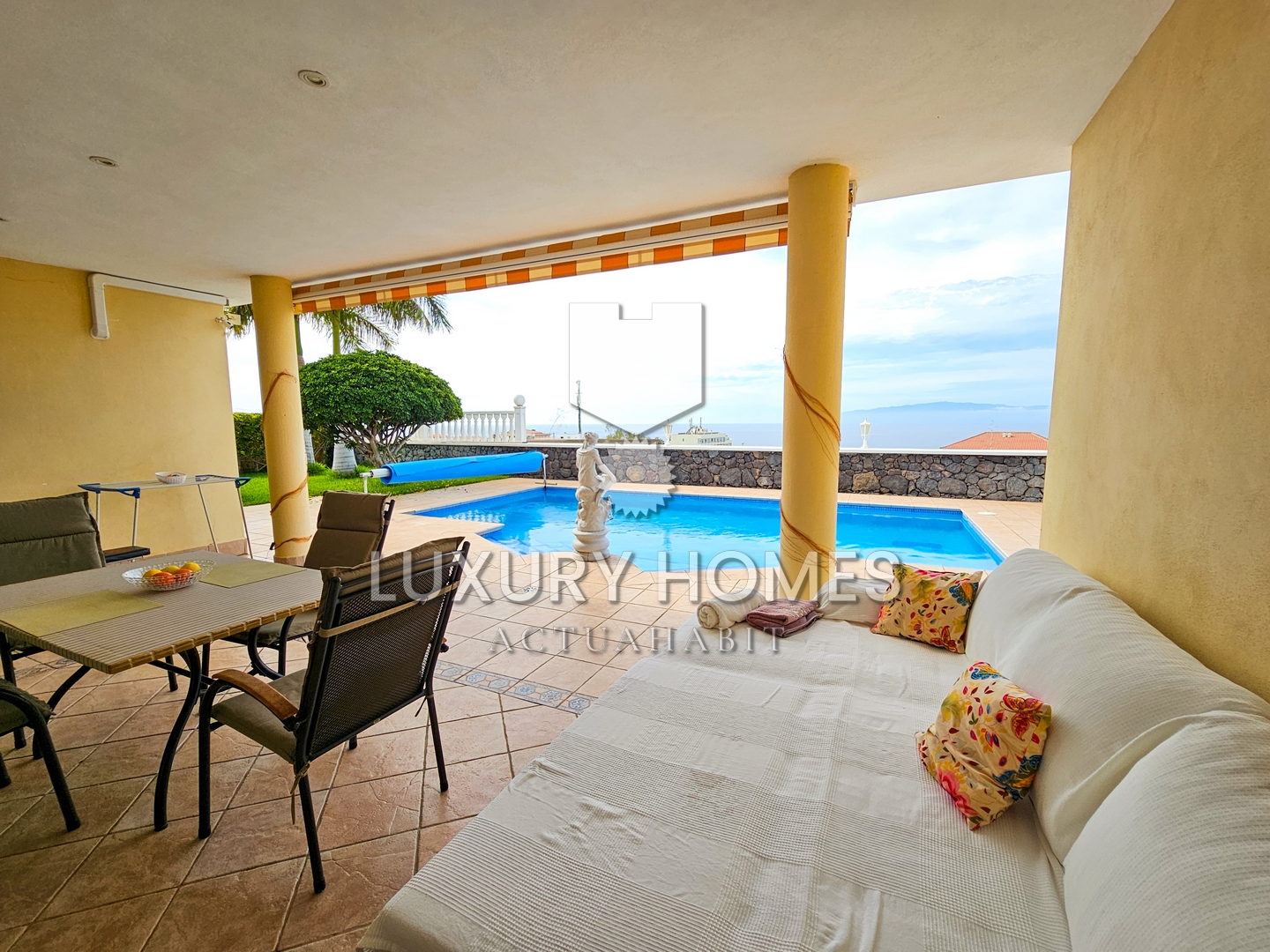 This charming villa offers beautiful sea views of La Gomera in a private, quiet setting. This property boasts a spacious 542 m² plot with a well-designed, single-level home featuring 147 m² of indoor living space.